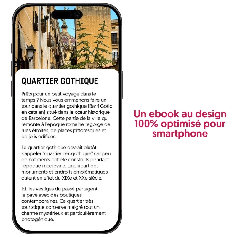 L’ebook est au format PDF, lisible sur smartphone, tablette ou ordinateur. Pas besoin de connexion internet une fois téléchargé. Seuls les liens Google Maps nécessitent un accès internet.